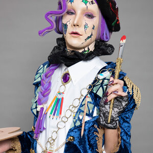 | メッセージ | 奇想天外で個性的なワンダーランド。そんな、ワンダーランド随一の画家。派手な物や綺麗な物に目がなく、自身も煌びやかな格好をしている。メイクは中性的な雰囲気が出るように、ドラァグクイーンを参考にし、衣装や髪の毛、小道具を自分で作りメイクとの統一感が出るように工夫した。 |