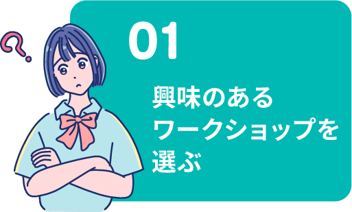 体験授業で興味のある分野に挑戦したり、進学や学校のことを先生や先輩に聞いたりして自分の将来のことを考えよう。