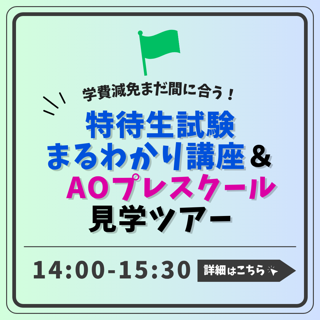 2025/09/24 入学検討者最大98万円学費減免のチャンス!<総合型選抜(AO)特待生>12/14(金)締切 ※必着総合型選抜(AO)特待生 学費減免額選考の結果により、A〜Eランクまでの金額を1年次前期学費より減免…
