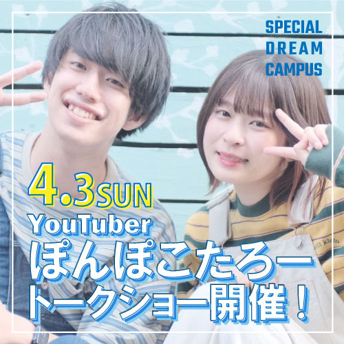 2022/02/04 入学検討者4/3(日) SpecialDreamCampus YouTuber『ぽんぽこたろー』トークショー 開催しました!4/3(日) SpecialDreamCampus にてYouTuber『ぽんぽこたろー』さんのトー…