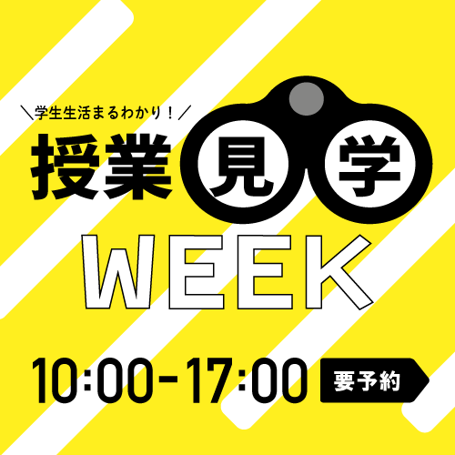 2024/09/13 入学検討者学生生活まるわかり!『授業見学WEEK』11/10(月)~11/14(金)の予約はこちら!12/8(月)~12/12(金)の予約はこちら…