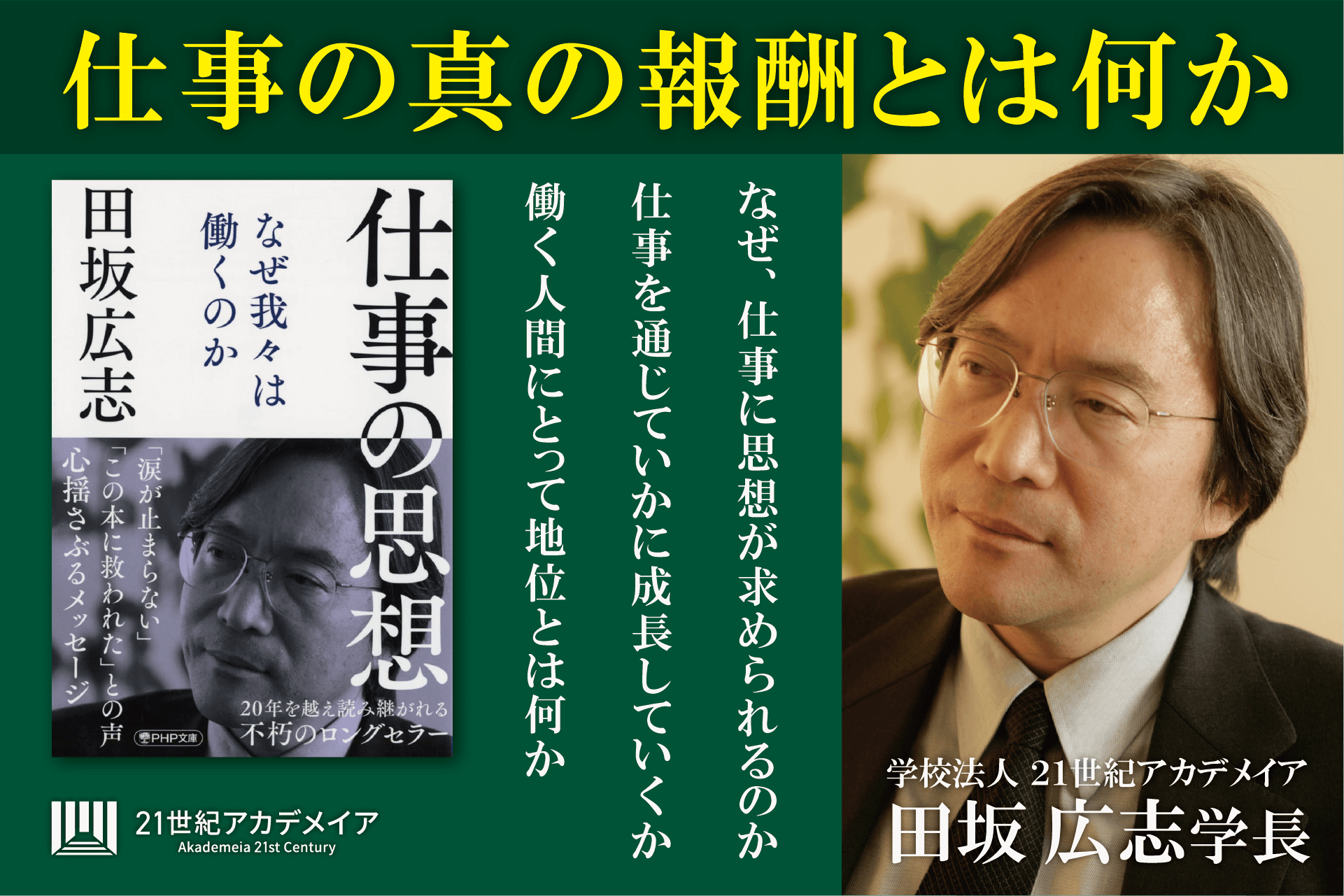 2025/05/02 その他【著書公開】田坂広志学長のロングセラー 『仕事の思想 なぜ我々は働くのか』 が29刷、10万部を突破。毎年春に、多くの人事部が新入社員に配布する不朽の名著。その内容を公開著書公開はこちらから 本書のアマゾンサイトはこちら 田坂広志アカデメイア 公式HP 学校法人 21…