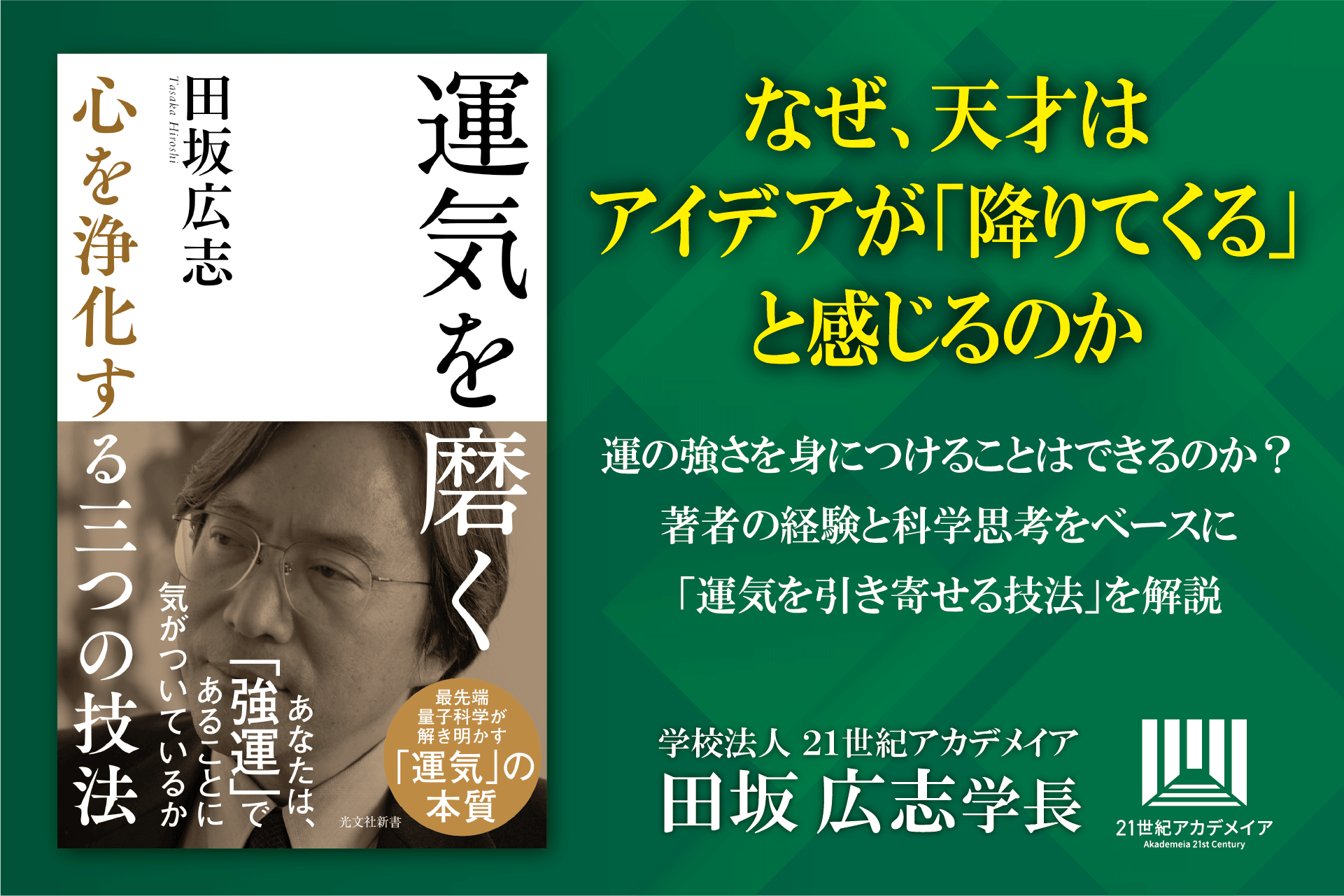 2025/05/16 その他【著書公開】田坂広志学長のロングセラー『運気を磨く』が16万部突破。心を浄化するだけで、直観力と創造力が高まり、運気を引き寄せ、人生が好転し始める。その「三つの技法」とは著書公開はこちらから 本書のアマゾンサイトはこちら 田坂広志アカデメイア 公式HP 学校法人 …