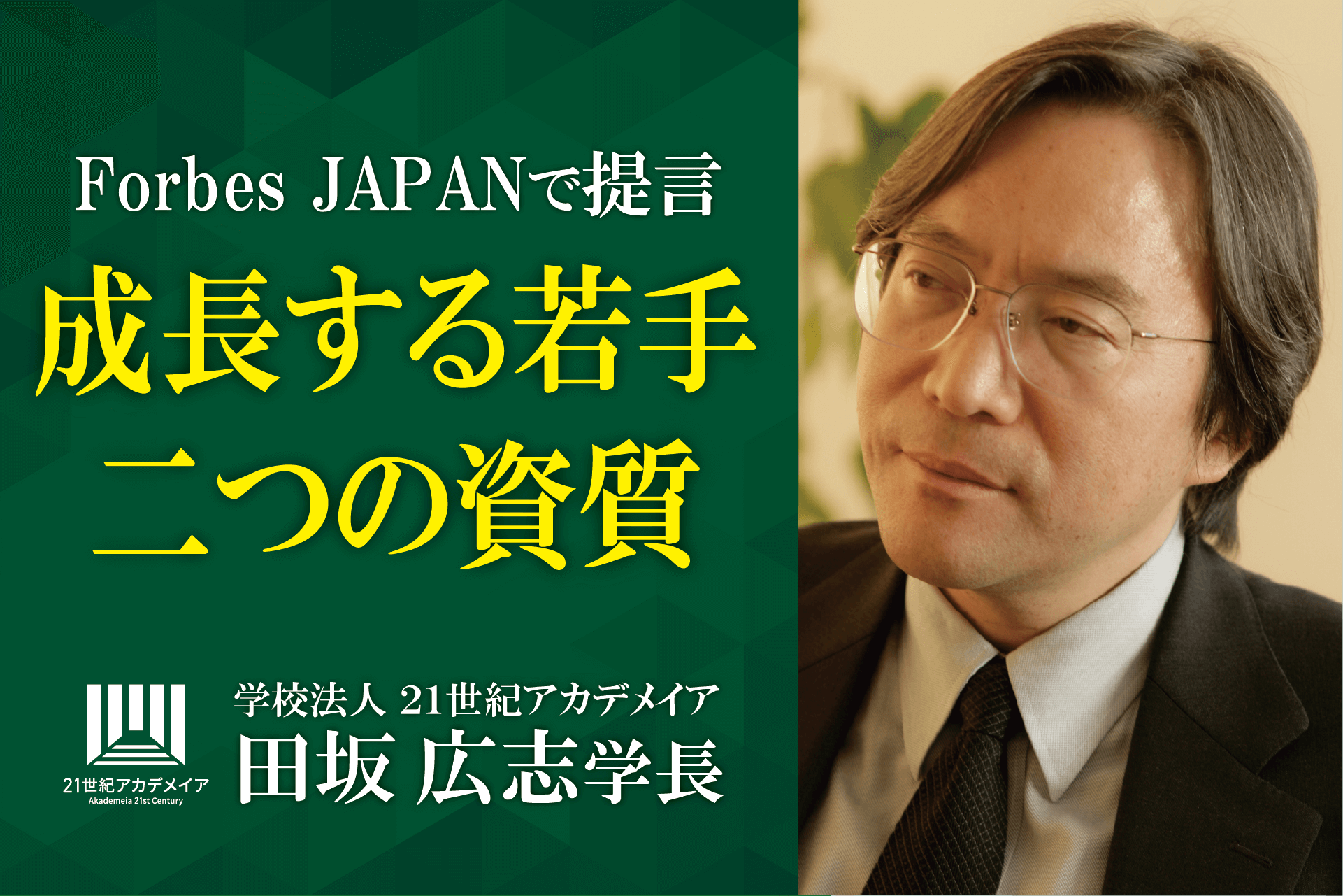2025/05/30 その他将来、大きく成長し活躍する人材が必ず持っている「二つの資質」とは何か?永年、多くの人材を育成してきた、21世紀アカデメイア・田坂広志学長が、『Forbes JAPAN』で、その資質を語るダウンロードはこちらから インタビューのご希望の方はこちら 学校法人 21世紀アカデメイア公式HP…