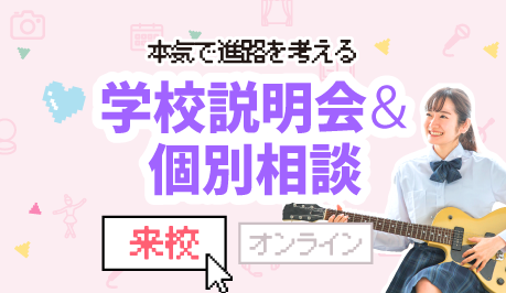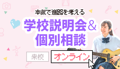 カリキュラムや入学方法、就職・デビューなどオンラインで詳しく説明します!