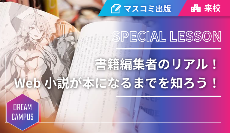 参加予約はこちら202601/25Sun【ドリームキャンパス】書籍編集者のリアル!Web小説が本になるまでを知ろう!